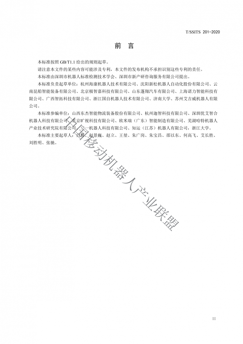 本標準參編單位∶山西東杰智能物流裝備股份有限公司、杭州迦智科技有限公司、深圳優艾智合機器人科技有限公司、