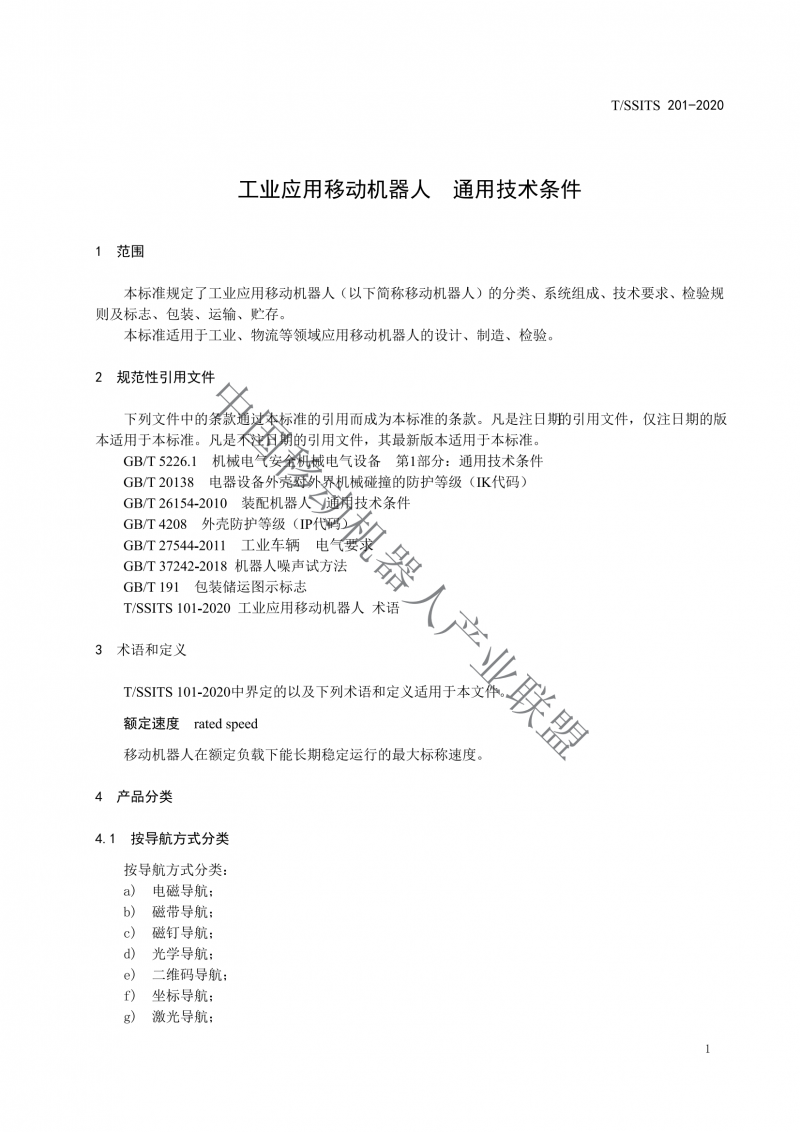工業應用移動機器人通用技術條件