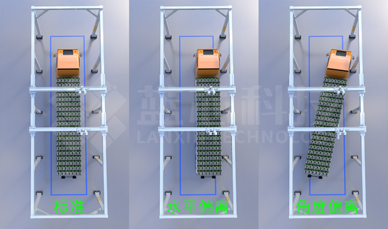 當車輛出現(xiàn)水平偏差或者角度停偏,智能裝車系統(tǒng)將自動糾偏,彌補停車偏差。