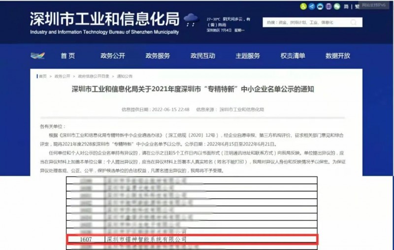2022年6月,深圳市工業和信息化局發布了《關于2021年度深圳市“專精特新”中小企業名單公示的通知》,通知顯示,深圳市鐳神智能系統有限公司(以下簡稱鐳神智能)通過了層層審核,憑借強大自主的研發能力獲得了深圳市“專精特新”中小企業認定!