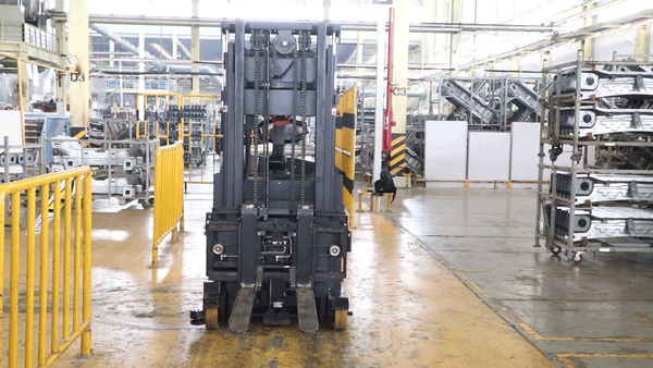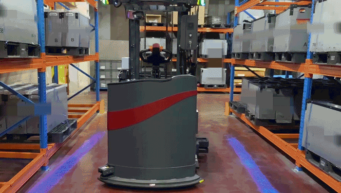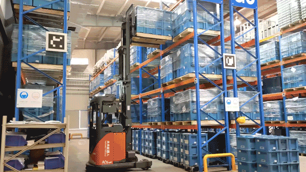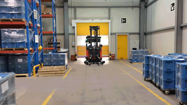 很多工廠車間的現(xiàn)場通道空間非常有限,轉(zhuǎn)彎半徑過大會嚴(yán)重影響搬運的效率。讓平衡重?zé)o人叉車應(yīng)用在窄通道場景中,行駛通道同時對行駛與轉(zhuǎn)彎半徑做出限制,將對車體的感知和定位精度和控制能力提出極高的要求。