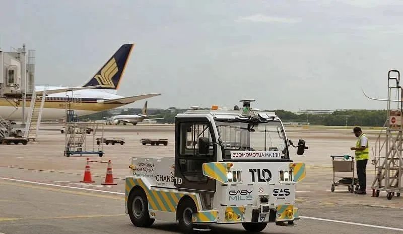 2021年8月,新加坡樟宜機(jī)場(chǎng)正在測(cè)試的無(wú)人駕駛行李車,配備了四個(gè)主要感應(yīng)器,以確保它順利安全行駛。投入使用后,它可把每趟行程的生產(chǎn)力提高15%。