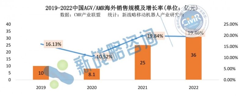 2022年,中國AGV/AMR企業在海外市場的銷售規模進一步提升,根據CMR產業聯盟數據,新戰略移動機器人產業研究所統計,2022年,中國AGV/AMR企業海外銷售規模為36億,同比增長44%。