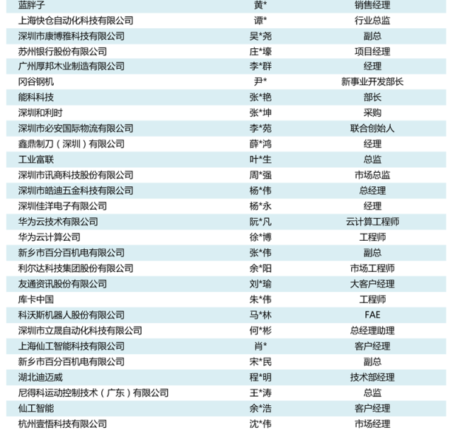 “第十二屆制造業(yè)物流與倉儲智能化工程大會”第二批200人參會名單