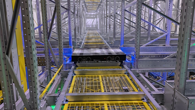 這個(gè)倉(cāng)庫(kù)是一個(gè)5℃冷藏庫(kù),主要存儲(chǔ)國(guó)內(nèi)某關(guān)鍵產(chǎn)業(yè)所需材料,要求恒溫恒濕。倉(cāng)庫(kù)高9米,為實(shí)現(xiàn)最大空間利用率,托盤四向穿梭車(簡(jiǎn)稱“四向車”)方案是最優(yōu)選擇。其中,曠視在軟件調(diào)度算法上的優(yōu)勢(shì),以及與松下信息很好的配合度,讓松下工廠最終選中了曠視智能托盤四向車系統(tǒng)。