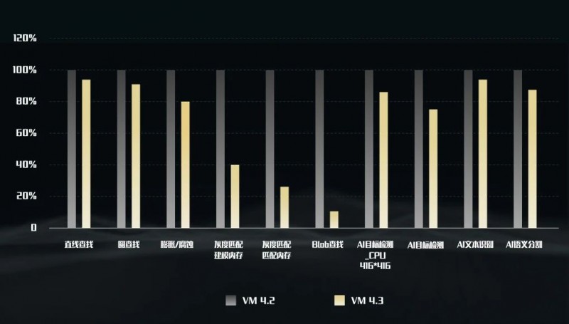 除了傳統算法外,VM4.3深度學習算法在CPU上的運行效率也有較大提升,有效降低對GPU的依賴,以及用戶的深度學習應用部署成本。