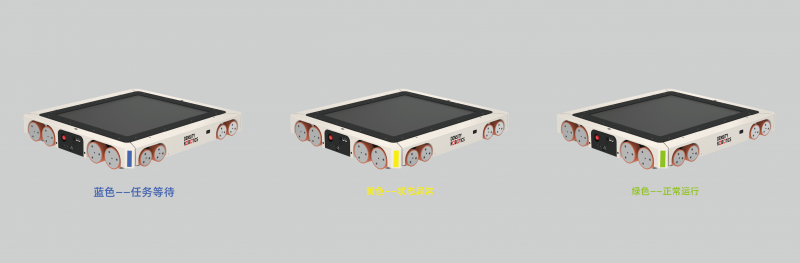 在車體四角設計狀態(tài)燈,黃色——異常;藍色——等待;綠色——正常,用戶第一時間可以通過警示燈顏色了解車體的狀態(tài),保障立體庫的穩(wěn)定運行。