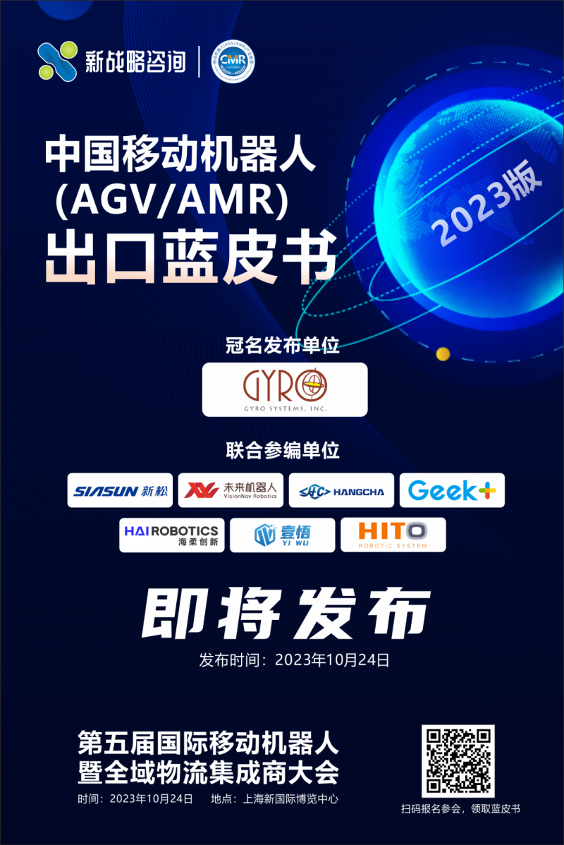 為了更詳細(xì)地解讀當(dāng)前國產(chǎn)AGV/AMR出海現(xiàn)狀及趨勢,由CMR產(chǎn)業(yè)聯(lián)盟主編,捷螺智能冠名發(fā)布,新松機(jī)器人、未來機(jī)器人、杭叉智能、極智嘉、海柔創(chuàng)新、壹悟科技、海通機(jī)器人等企業(yè)聯(lián)合編制的《中國移動(dòng)機(jī)器人(AGV/AMR)出口藍(lán)皮書》將在10月24日舉辦的“i第五屆國際移動(dòng)機(jī)器人暨全域物流集成商大會”上重磅發(fā)布,參會人員可免費(fèi)獲得藍(lán)皮書紙質(zhì)版一份,敬請期待!