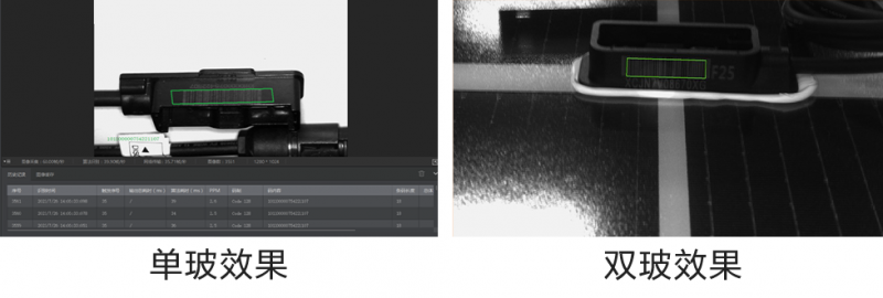 需求:電池片串焊排版后,匯流條處會貼附標(biāo)簽碼用于質(zhì)量追溯,需要透過一層毛玻璃,及一層EVA膠膜讀取,讀碼后實現(xiàn)至MES系統(tǒng)對接。