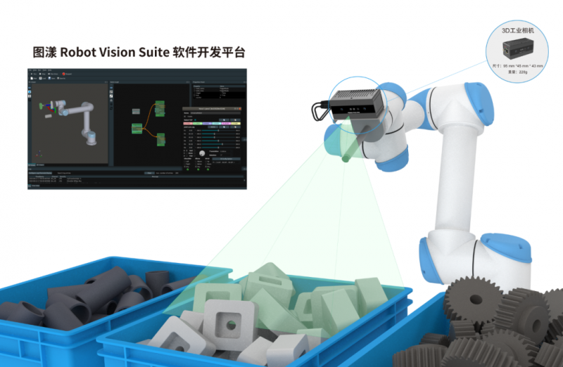 用戶在使用圖漾UR+認證相機時,還可獲得圖漾科技多款機器人視覺開發(fā)軟件的免費授權、安裝使用、操作培訓及技術支持,在實際項目中可大幅簡化傳統(tǒng)視覺項目的編程難度及實施周期。