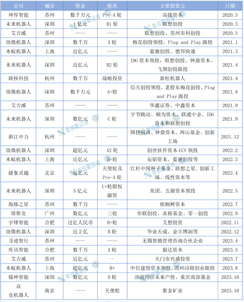 圖表:2020-2023年無人叉車企業(yè)融資事件(根據(jù)公開信息整理,如有未完善之處,請指正)