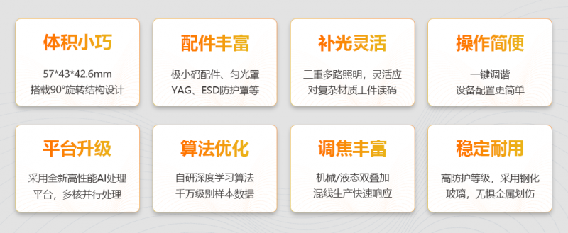 2.高速讀碼 → 全新優化照明系統+AI讀碼算法,滿足小曝光高節拍讀碼場景。