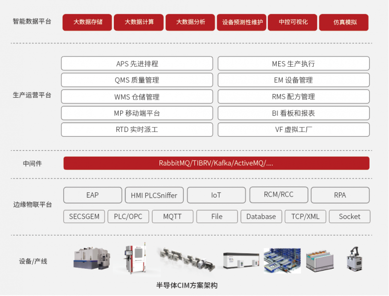 自主可控CIM系統(tǒng)方案,融合了在半導(dǎo)體晶圓和封測領(lǐng)域多年的專家經(jīng)驗,采用了最新一代的信息系統(tǒng)技術(shù)和平臺,可滿足全自動化和半自動化場景需求的半導(dǎo)體數(shù)字化工廠解決方案。