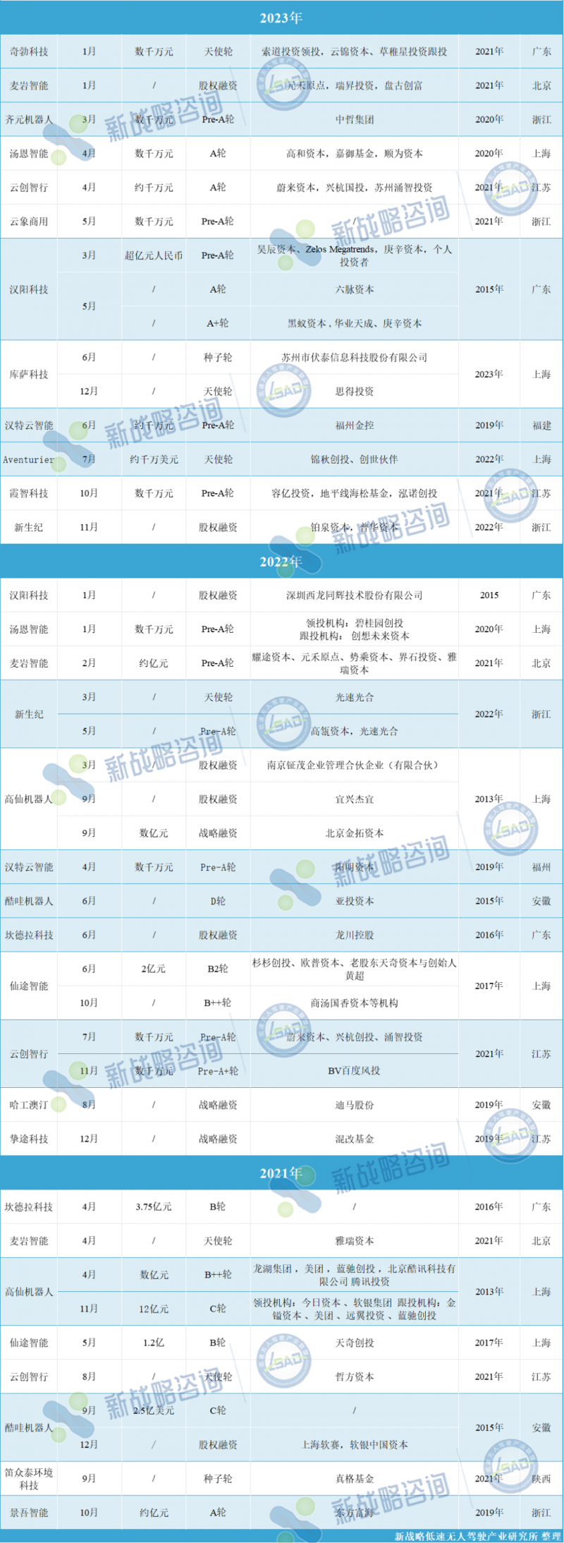 2021-2023年國內無人清潔環衛領域融資情況(據公開信息,新戰略低速無人駕駛產業研究所不完全整理)