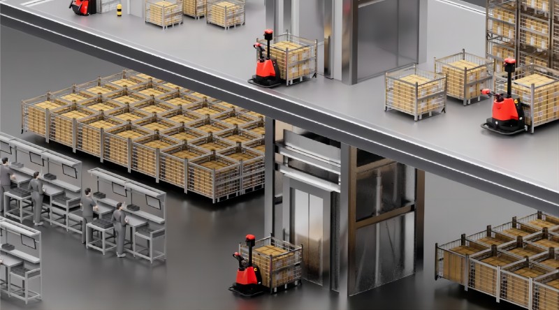 產線貨物配送量大,長距離、跨樓層,通道窄