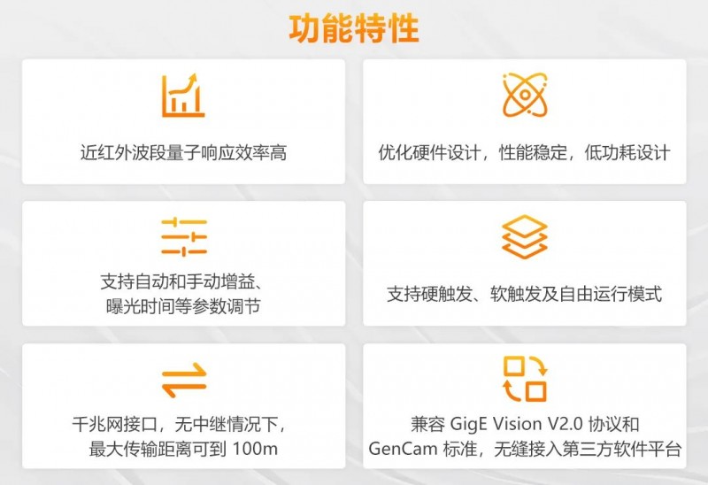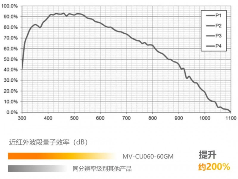 該相機(jī)近紅外波段的響應(yīng)效率顯著提升,能夠在近紅外光環(huán)境下保證成像效果,在常見的近紅外應(yīng)用中,如光伏、激光檢測、眼科醫(yī)療等應(yīng)用中,能夠確保細(xì)節(jié)的獲取與圖像亮度效果的呈現(xiàn)。