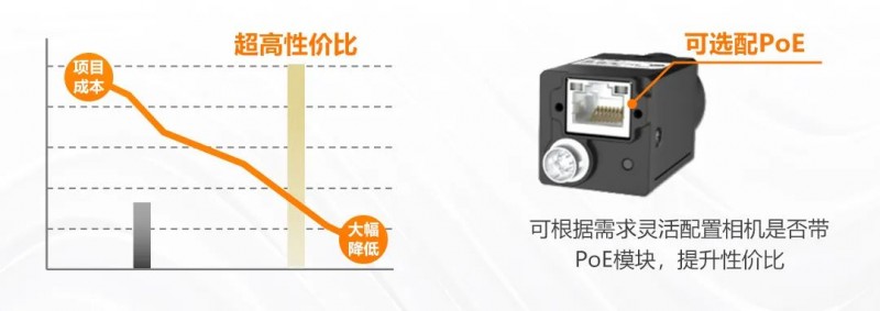 通過精簡相機(jī)資源、選配POE模塊,保留“恰到好處”的功能,在滿足廣泛視覺檢測與分析應(yīng)用需求的同時(shí),還提供了超高性價(jià)比。