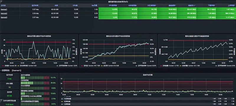 該運(yùn)維管理平臺(tái)開放控制臺(tái),可集群中的各臺(tái)服務(wù)器資源進(jìn)行整合、實(shí)時(shí)的監(jiān)管,通過可視化圖表,全覆蓋各種資源指標(biāo),幫助快速巡檢整體情況。