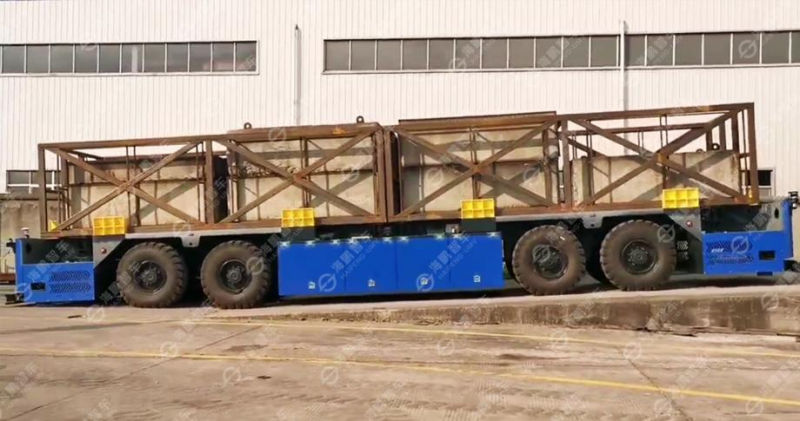 在長路程行走的多車同步控制中,參與聯動的車輛不可能做到完全的一致性,加上路面的高低無規律的多變性,參與聯動的車輛在行駛進程中必然會出現橫向和縱向偏離,甚至出現翻滾的趨勢。行駛路程越遠,這種累計的偏離量就會越大,當偏離量累積到一定程度,就會導致物體跌落或者扭曲損壞甚至損壞車輛。面對超大車輛間距和長路程的多車聯動的累計偏離量的克服,海鵬智車都有自己獨到的解決方案。