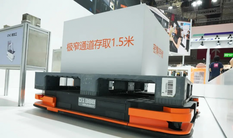 在工博會上,海康機器人圍繞“多維柔性,智賦智造”的主題,展示了專為優化庫容而設計的潛伏叉取式機器人,打造了極窄通道托盤搬運的解決方案