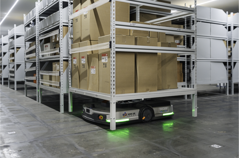 LMR 機(jī)器人能夠與升降機(jī)精準(zhǔn)對(duì)接,實(shí)現(xiàn)汽車零部件在三個(gè)平臺(tái)層之間的快速轉(zhuǎn)運(yùn),輕松管理超過 6,000 個(gè)SKU,極大地提升了揀選準(zhǔn)確率。
