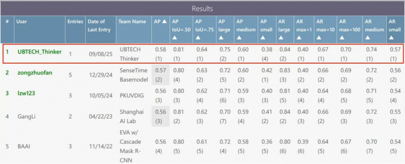 優(yōu)必選Thinker在MS COCO detection challenge - Segmentation Mask中排名第一