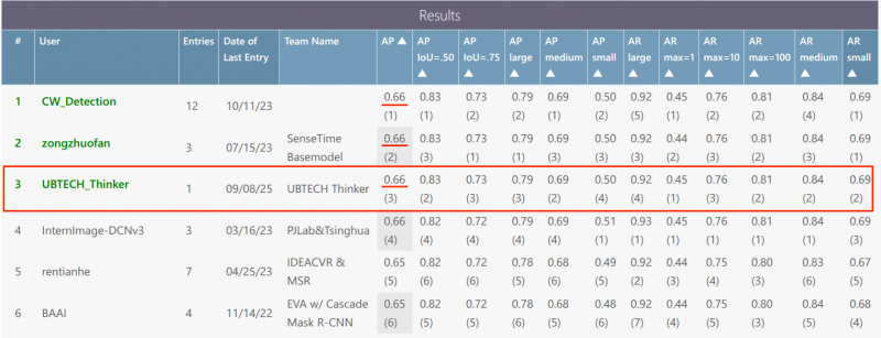 優(yōu)必選Thinker在MS COCO detection challenge - Bounding Box排名中并列第一