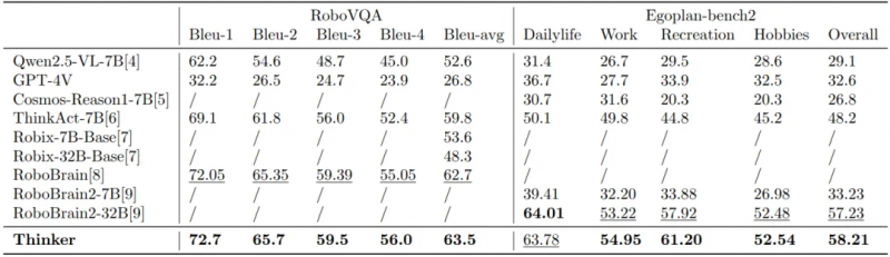 優(yōu)必選Thinker在RoboVQA與Egoplan-bench2中排名第一