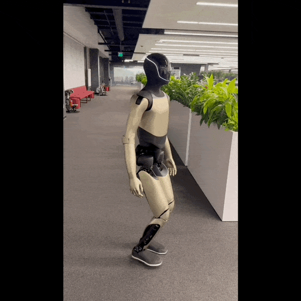最讓人眼前一亮的,還是它的“走路方式”。視頻里,這臺(tái)金色 Optimus 的步態(tài)明顯更加自然,腳跟著地、步伐穩(wěn)健,非常接近人類(lèi)走路的方式。
