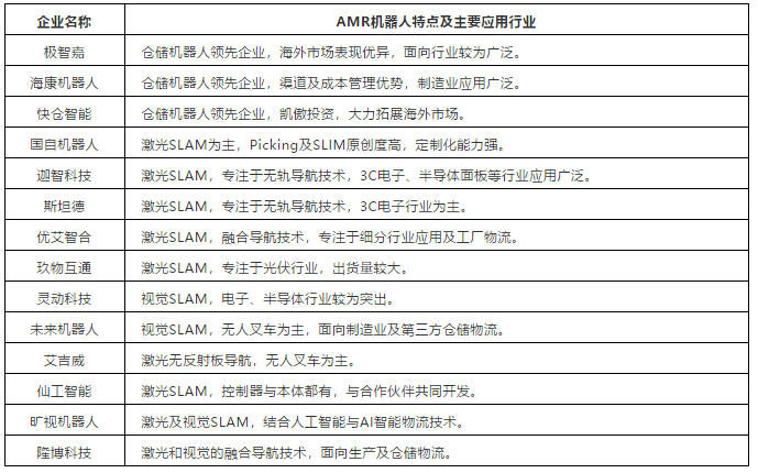 圖表2:國內(nèi)市場(chǎng)主要做AMR機(jī)器人的企業(yè)(部分代表)