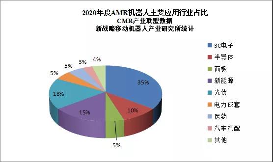 2020年AMR機(jī)器人應(yīng)用主要集中在3C電子、半導(dǎo)體、面板、新能源及光伏、電力成套及醫(yī)藥行業(yè)等制造領(lǐng)域,其中3C電子行業(yè)應(yīng)用規(guī)模最大,占比40%。值得注意的是,2020年AMR機(jī)器人在傳統(tǒng)的汽車市場(chǎng)也有滲透,但占比不大。主要原因在于新興制造業(yè)對(duì)生產(chǎn)線的柔性化要求程度更高,因此AMR在這些領(lǐng)域更受青睞。不過伴隨著AMR技術(shù)的進(jìn)一步成熟以及制造業(yè)產(chǎn)業(yè)升級(jí)的加速,未來AMR機(jī)器人將逐漸向更廣闊的市場(chǎng)延伸。