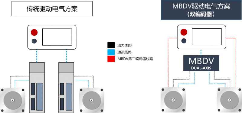 2020年11月CeMAT(亞洲國際物流技術與運輸系統(tǒng)展覽會)展上鳴志隆重發(fā)布了MBDV型二合一低壓伺服驅動產(chǎn)品。MBDV采用緊湊型設計,體積縮小36.8%,支持20-60V寬電壓輸入,兼容全信號A/B/Z & Hall型和通訊型兩種編碼器伺服電機,可以適配100W~750W低壓伺服電機。MBDV是根據(jù)未來5年AGV/AMR發(fā)展需求而設計,相對于現(xiàn)有方案具有技術領先優(yōu)勢: