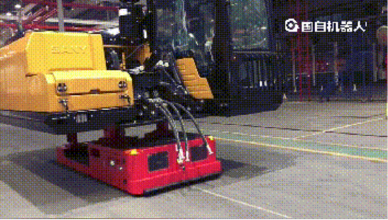 采用AGV進(jìn)行柔性智能裝配的挖掘機(jī)生產(chǎn)線。