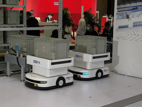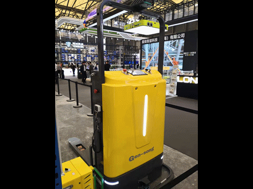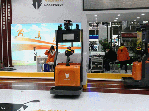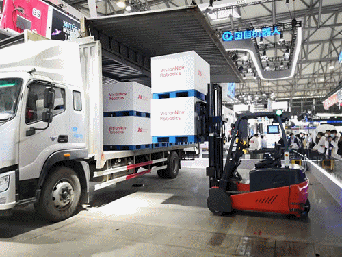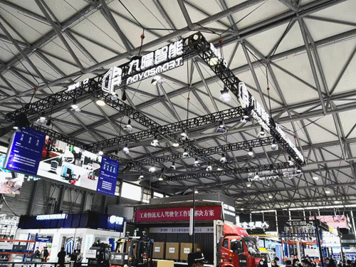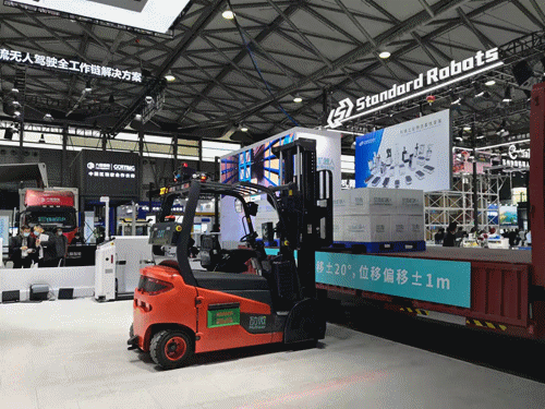 E系列及P系列視覺無人叉車,并現(xiàn)場演示了室內(nèi)外裝卸貨車方案,其在復(fù)雜多變環(huán)境下的峰值工作效率與人工叉車可比擬。
