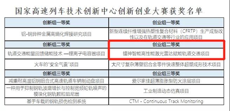 鐳神智能以高性能激光雷達(dá)賦能軌道交通項(xiàng)目榮膺該創(chuàng)新創(chuàng)業(yè)大賽的創(chuàng)業(yè)組二等獎(jiǎng)。