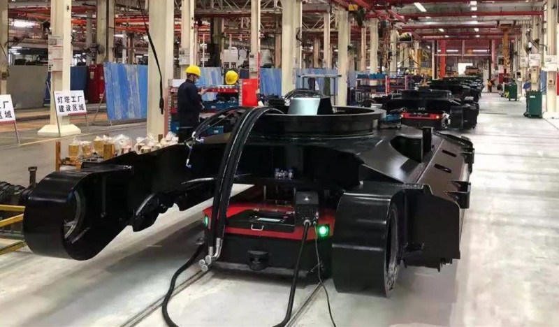 25臺重載AGV——國自助力某大型挖掘機工廠打造柔性產線!