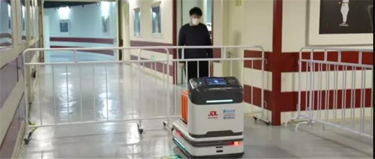 在冬奧會場館閉環內外兩層鐵馬之間4米的緩沖區,京東物流的室外智能物流機器人承擔起運送大件物品,保障閉環內人員所需物資的職責。據了解,室外智能物流機器人承重能力在30-300kg,可實現無人接觸式的單項終端配送,可以自由移動、自主避障、自動回充,還可以智能規劃路徑,工作人員只需要將他們想要交付的貨物放在物流機器人的頂部,機器人就會運送到交付站并根據預設的路線卸載貨物,這將極大減少人員接觸。