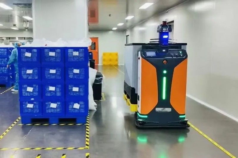 方案中,斯坦德移動機器人OASIS 300UL/SRL負責執行乳化車間、包材車間物料運輸任務,當車間某一設備需要物料時,由員工使用平板電腦發送用料需求,通過FMS調度系統呼叫OASIS 300UL/SRL前來運輸物料。